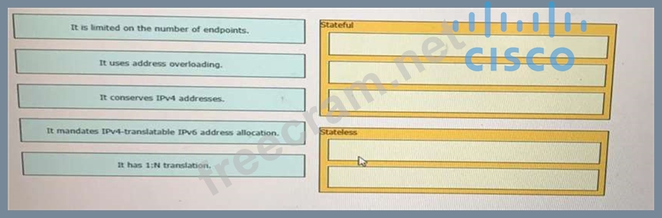 Drag and drop the NAT64 descriptions from the left onto the correct NAT64 types on the right.