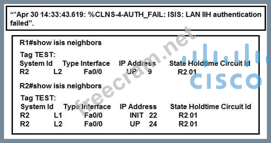 Refer to the exhibits. R1 and R2 are directly connected and IS-IS routing has been enabled between R1 and R2. R1 generates the above log message periodically.