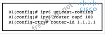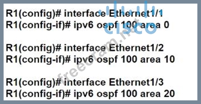 An engineer is configuring router R1 for OSPFv3 as shown. Which additional configuration must be performed so that the three active interfaces on the router will advertise routes and participate in OSPF IPv6 processes?