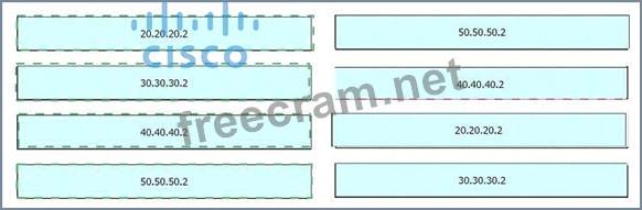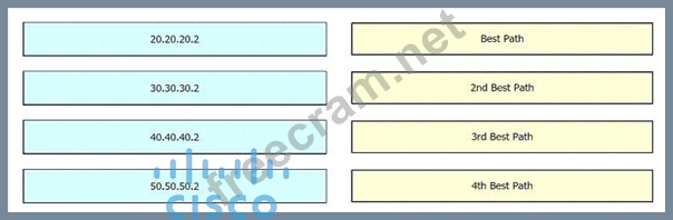 An engineer wants to determine which paths are best, second best, third best, and fourth best. Drag and drop the peer addresses on the left to the corresponding BGP best-path selection order on the right.