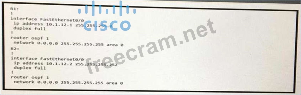 R1 and R2 are directly connected with Fast Ethernet interfaces and have the above configuration applied OSPF adjacency is not formed. When the debug ip ospf hello command is issued on R1. these log messages are seen.