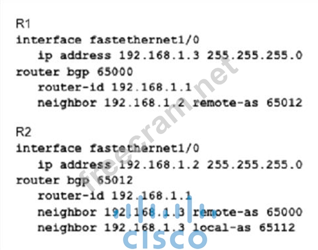 Assume all other configurations are correct and the network is otherwise operating normally. Which conclusion can you draw about the neighbor relationship between routers R1 and R2?