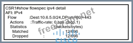 Refer to me exhibit. A network operator recently configured BGP FlowSpec for me internal IT network.
