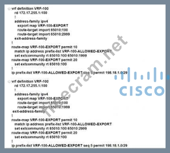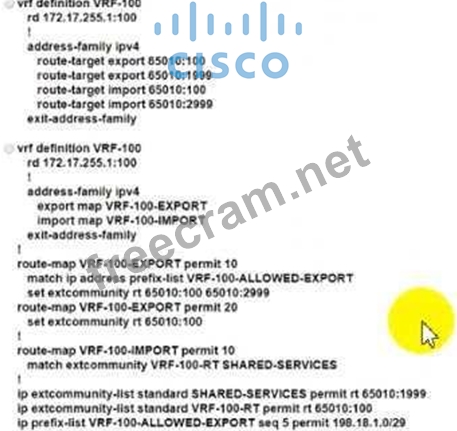 Refer to the exhibit. An ISP provides shared VoIP Extranet services to a customer in VRF-100 with these settings: