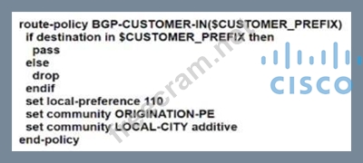 - It must attach the ORIGINATION-PE and LOCAL-CITY communities to all