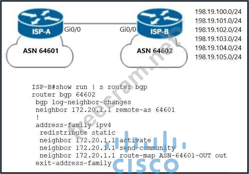 Question 105: Refer to the exhibit. A network engineer at ISP-B must adver...