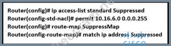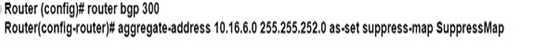 Refer to the exhibit. An engineer is implementing BGP selective prefix suppression. The router must advertise only 10.16.4.0/24,10.16.5.0/24, and summarized route 10.16.0.0/21, and suppress