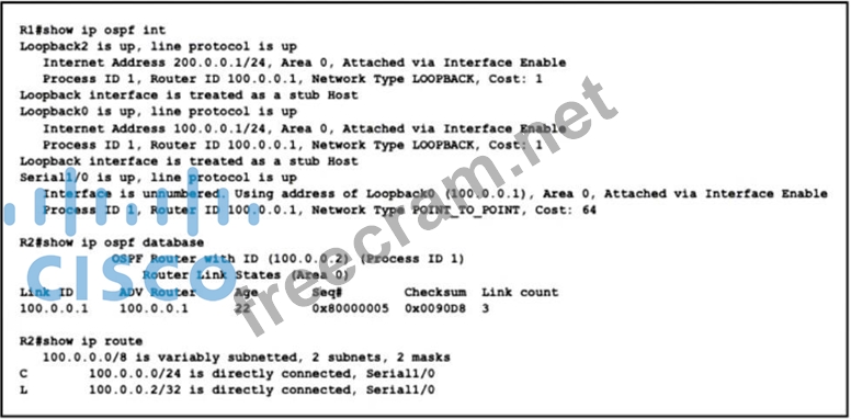 Question 1: Refer to the exhibit. Router 1 and router 2 are running OSPF...