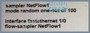 Flexible NetFlow improves on traditional NetFlow by providing more flexibility and efficiency in collecting and analyzing network flow data. In this specific configuration, the "mode random one-out-of-100" command is used, which means that only one out of every 100 packets is sampled. This leads to reduced CPU and memory utilization (Option A) because fewer packets are being processed. Additionally, because fewer packets are being analyzed (only one out of every 100), the number of packets to be analyzed is significantly reduced (Option D), leading to further efficiencies. Reference: Implementing and Operating Cisco Service Provider Network Core Technologies On-Demand E-Learning