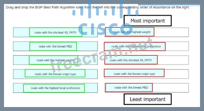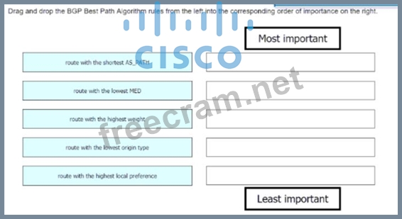 Question 41: Drag and drop the BGP Best Path Algorithm rules from the lef...