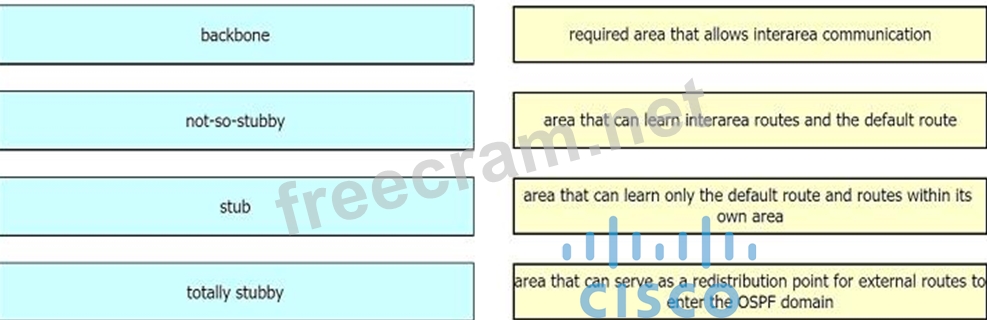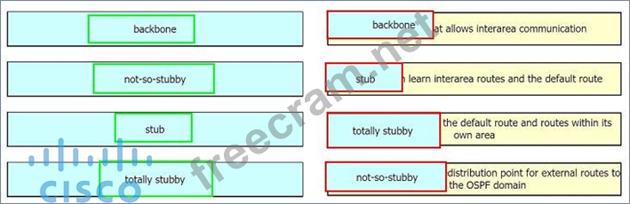Question 137: Drag and drop the OSPF area types from the left onto the cor...