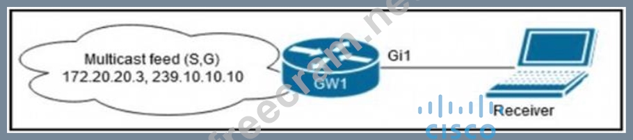 Refer to the exhibit. A network administrator is implementing IGMP to enable multicast feed transmission to the receiver. Which configuration must the administrator deploy on GW1 to permit IGMP Joins only to the assigned (S, G) feed?