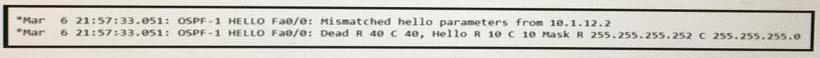 Refer to the exhibit: R1 and R2 are directly connected with Fast Ethernet interfaces and have the above configuration applied OSPF adjacency is not formed. When the debug ip ospf hello command is issued on R1. these log messages are seen. Which command can be configured on routers R1 and R2 on fO/O interfaces to form OSPF adjacency?