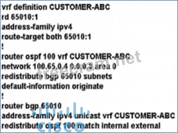 Question 83: An engineer is setting up overlapping VPNs to allow VRF ABC ...