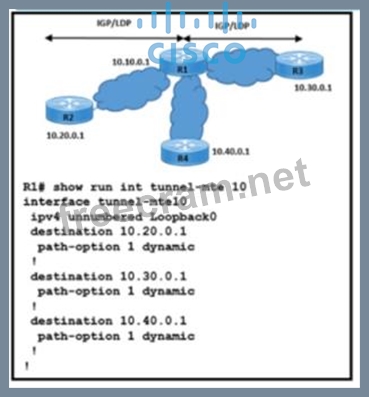 Refer to the exihibit. Refer to the exhibit. An engineer must Implement a traceroute operation to verity the R1 point-to-multipoint LSP connections. The traceroute operation must return all labels and hop-by-hop IP addresses for destinations 10.20.0.1. 10.30.0.1, and 10.40.0.1. and the maximum number of hops is 4. Which command must be executed to meet the requirements?