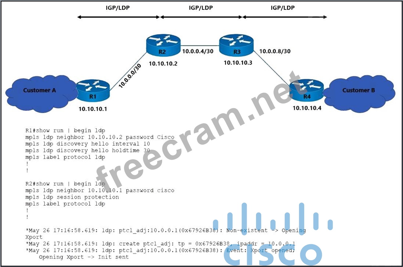 Refer to the exhibit. The operations team is implementing an LDP-based configuration in the service provider core network with these requirements: