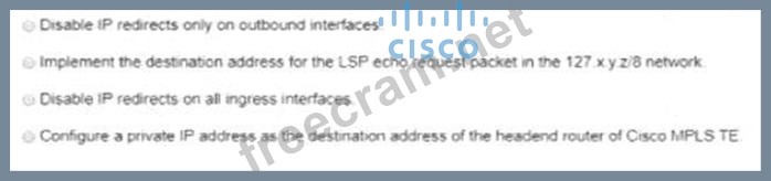 To prevent packets from being forwarded beyond the service provider domain when the Label Switched Path (LSP) is down, the engineer must configure a private IP address as the destination address of the headend router of Cisco MPLS Traffic Engineering (TE). This ensures that if the LSP fails, the packets will not be routable over the public internet, thus containing them within the service provider's network.