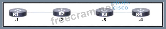 Refer to the exhibit. A network operator working for a private telecommunication company with an employee id: 7138: 13:414 just added new users to the network, which resides in VLANs connected to routers R1 and R4. The engineer now must configure the network so that routers R1 and R4 share routes to the VLANs, but routers R2 and R3 are prevented from including the routes in their routing tables. Which configuration must the engineer apply to R4 to begin implementing the request?