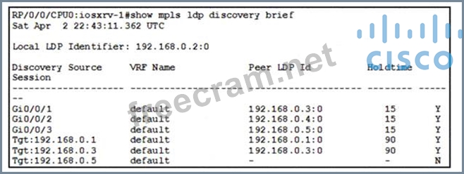 Refer to the exhibit: With which router does IOSXRV-1 have LDP session protection capability enabled but session hold up is not active?