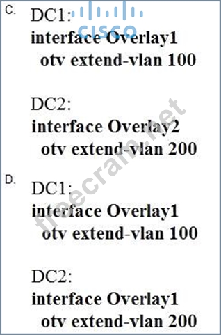 Host 1 is in VLAN 100 located is DataCenter 1 and Host2 is in VLAN200 located in DataCenter2. Which OTV VLAN mapping configuration allows Layer 2 connectivity between these two hosts?