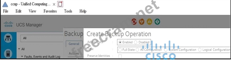 Question 33: An engineer wants to create a backup of Cisco UCS Manager fo...