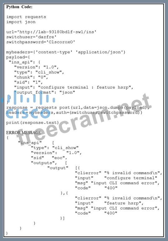 Question 45: Refer to the exhibit. (Exhibit) Why does the python code for...