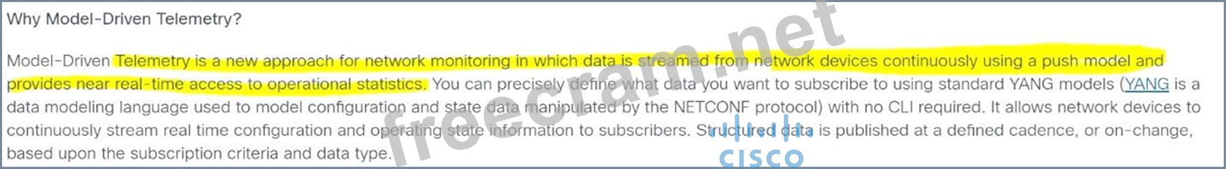 Question 78: What is an advantage of streaming telemetry over SNMP?...