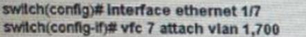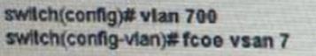 A network engineer configures a converged network adapter (CNA) and must associate a virtual fiber Channel 7 interface to VSAN 7. The CAN connected to the interface Eth1/7, and VLAN 700 is mapped to the VSNA.
