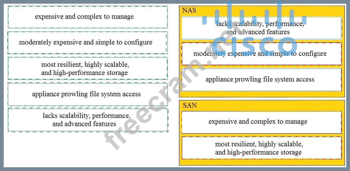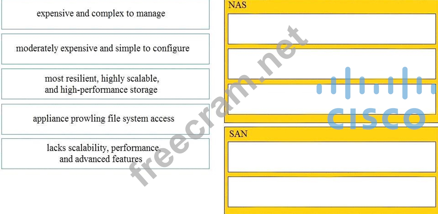 Drag and drop the characteristics from the left onto the correct storage systems on the right.
