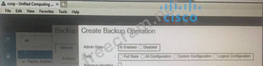 Question 15: An engineer needs to make an XML backup of Cisco UCS Manager...