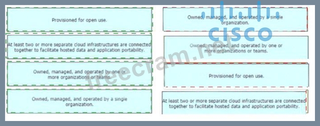 A network engineer is asked to describe the cloud infrastructure models from the perspective of their operation and access to resources. Drag and drop the descriptions from the left onto the appropriate.