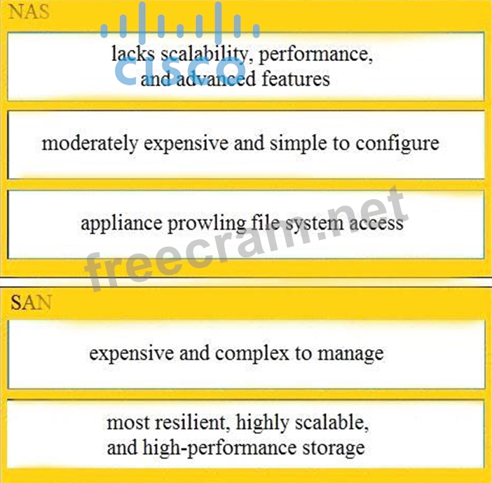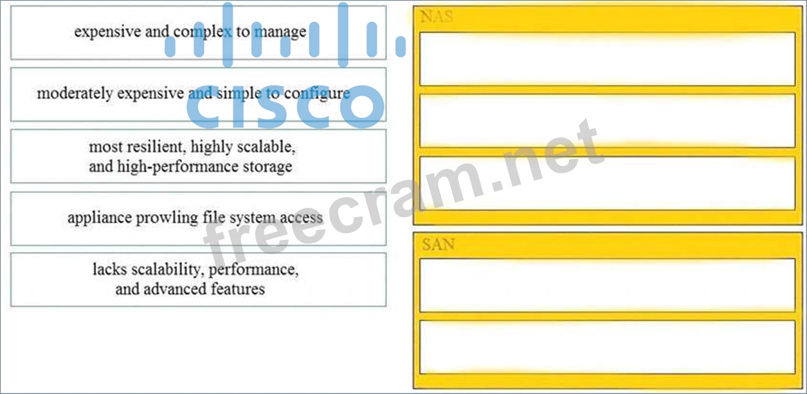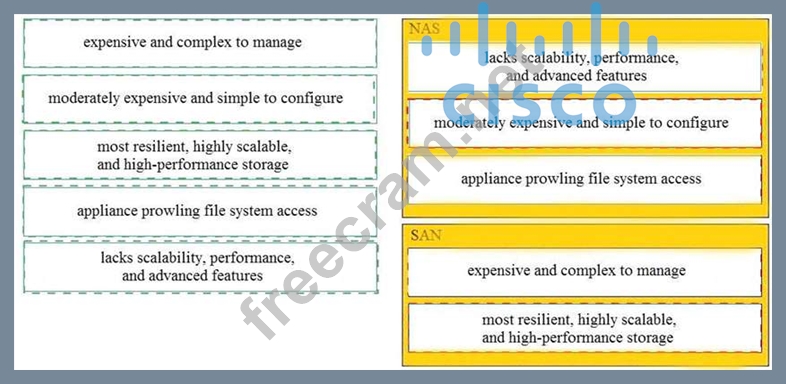 Question 167: Drag and drop the characteristics from the left onto the NAS...