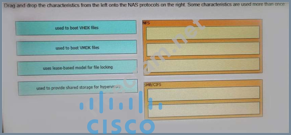 Question 167: Drag and drop the characteristics from the left onto the NAS...