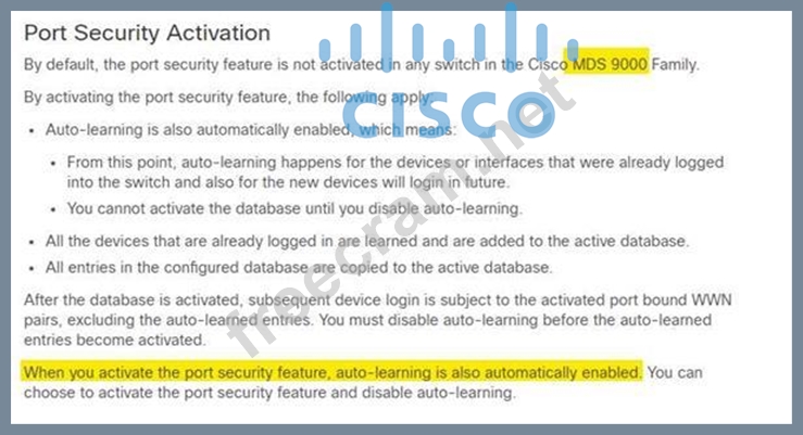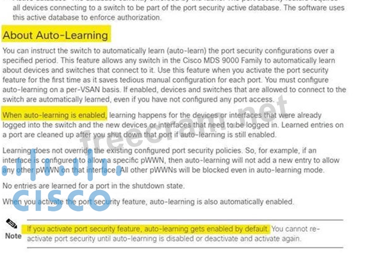 Question 25: Port security is enabled on a Cisco MDS 9000 Series Switch. ...