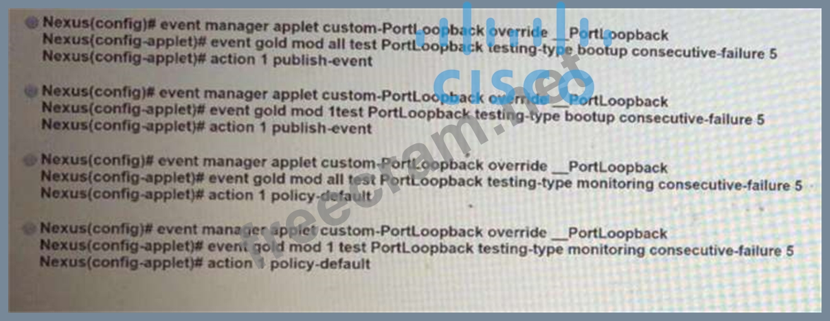 Question 15: The Cisco Nexus switch Generic Online Diagnostics policy for...