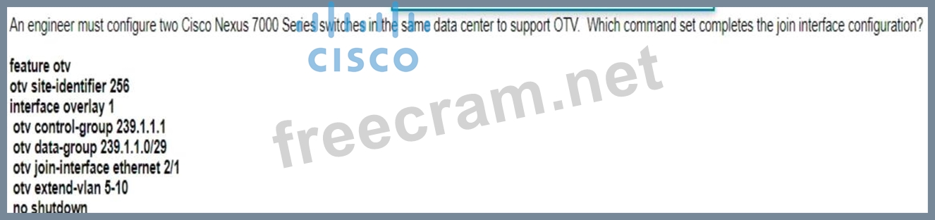 An engineer must configure two Cisco Nexus 7000 series switches in the same data center to support OTV. Which command set completes the join interface configuration?