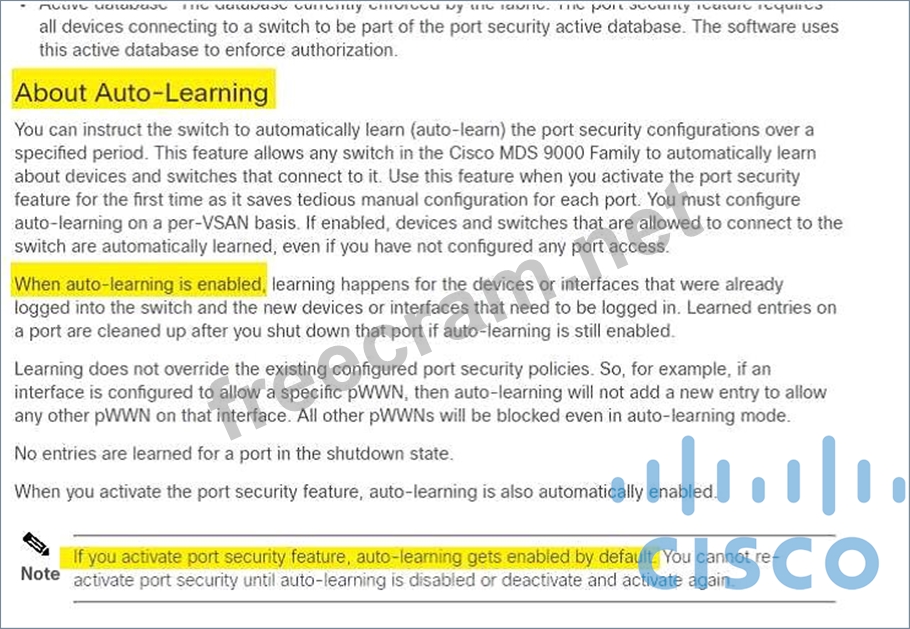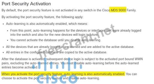 Question 129: Port security is enabled on a Cisco MDS 9000 series Switch. ...