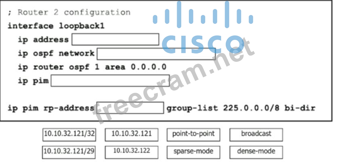 Drag and drop the configuration steps to complete the configuration for Router 2. Not all configuration steps are used.