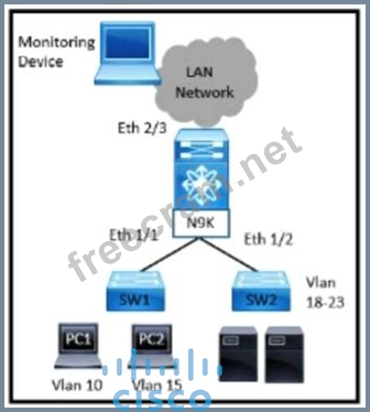 The servers that are connected to SW2 are experiencing packet drops when they connect to the Internet The engineer wants to configure the required traffic capture to investigate the issue further Which configuration must be implemented to monitor the traffic?