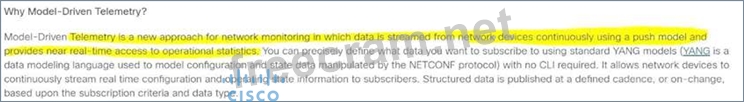 Question 299: Which behavior defines streaming telemetry as a push model i...