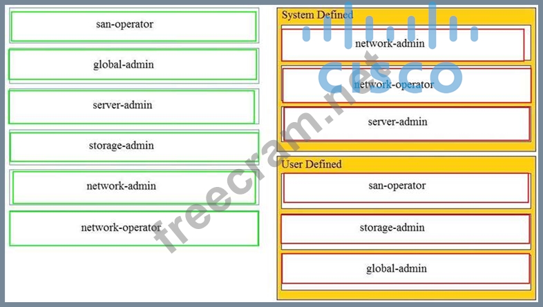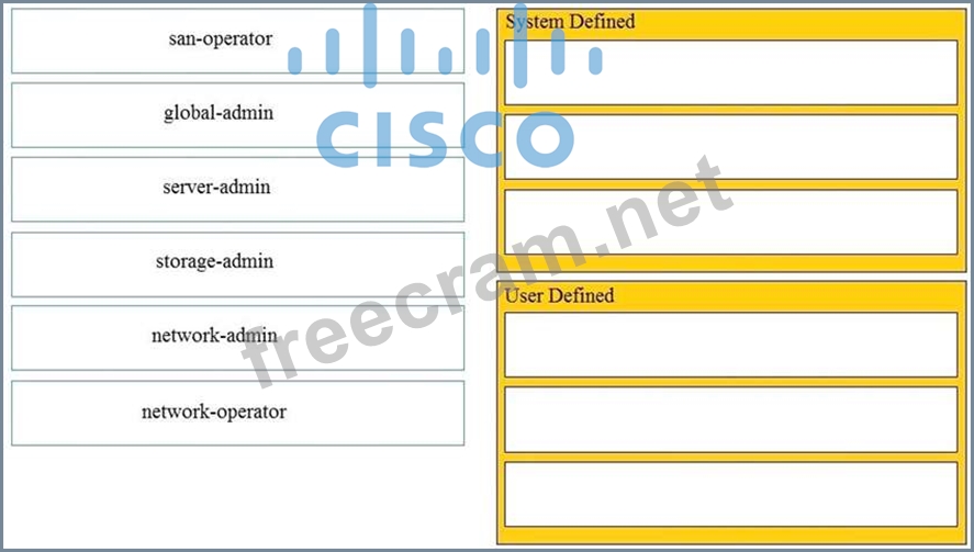 Drag and drop the Cisco MDS 9000 Series roles from the left onto the correct categories on the right.