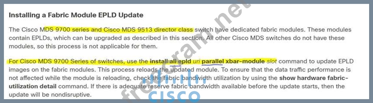 A network engineer needs to upgrade the EPLDs of the fabric modules for a Cisco MDS director-class switch.