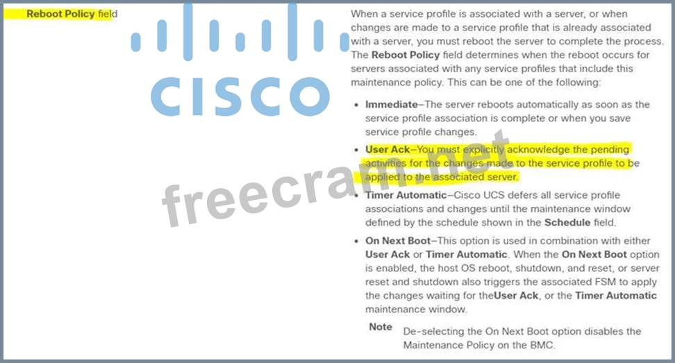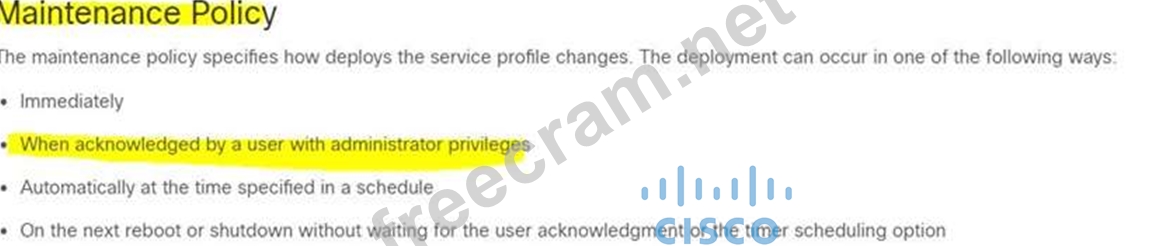 An engineer creates a service profile in Cisco UCS Manager and must assign a policy that reboots blades when changes are applied. The changes must be applied only after user acknowledgment. Which two policies must be configured to meet these requirements? (Choose two.)