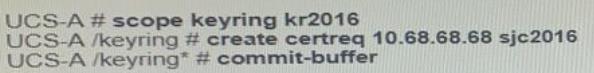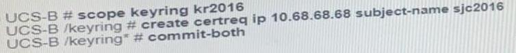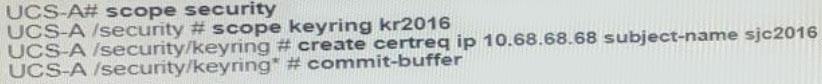 An engineer has a primary fabric that is named UCS-A and a secondary fabric that is named UCS-B. A certificate request that has a subject name of sjc2016 for a keyring that is named kr2016 needs to be created.