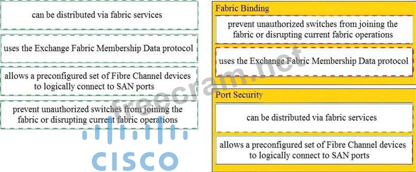 An engineer is implementing security on the Cisco MDS 9000 switch. Drag drop the descriptions from the left onto the correct security features on the right.