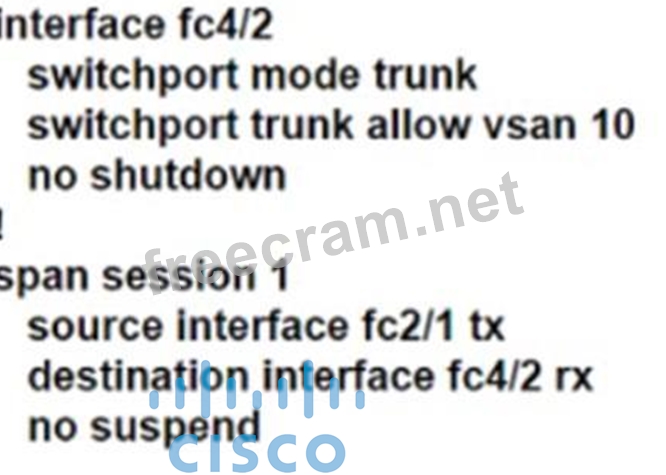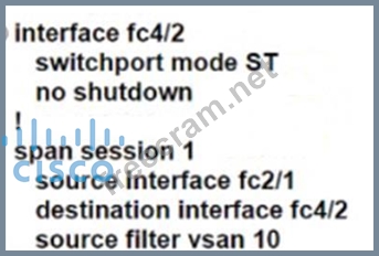 An engineer must configure a Cisco MDS 9000 Series Switch for traffic analysis from the storage array. The storage array is connected to the interface fc2/1 in VSAN 10 and the traffic analyzer to fc4/2. The capture file must include ingress and egress traffic between the switch and the storage array. Also, only traffic in VSAN