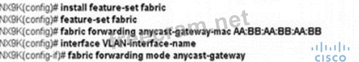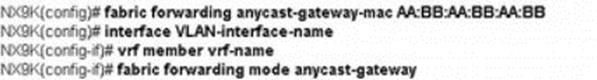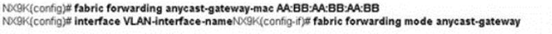 An engineer must configure a VXLAN routing on a cisco Nexus 9000 series Switch. The engineer requires a solution where all the leaf switches have the same gateway MAC and IP address. Which configuration set accomplishes this task?