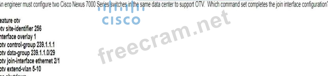 An engineer must configure two Cisco Nexus 7000 series switches in the same data center to support OTV. Which command set completes the join interface configuration?