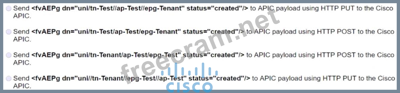 Question 25: An engineer must create an EPG called "Test". The configurat...