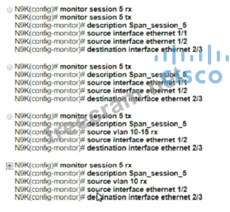 Question 38: The engineer must configure SPAN on a cisco Nexus 5000 Serie...